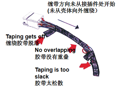 膠帶點纏是指使用膠帶在線束上的同一位置裹纏至少三圈。